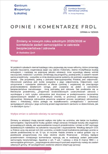 Zmiany w nowym roku szkolnym 2025/2026 w kontekście zadań samorządów w zakresie bezpieczeństwa i zdrowia